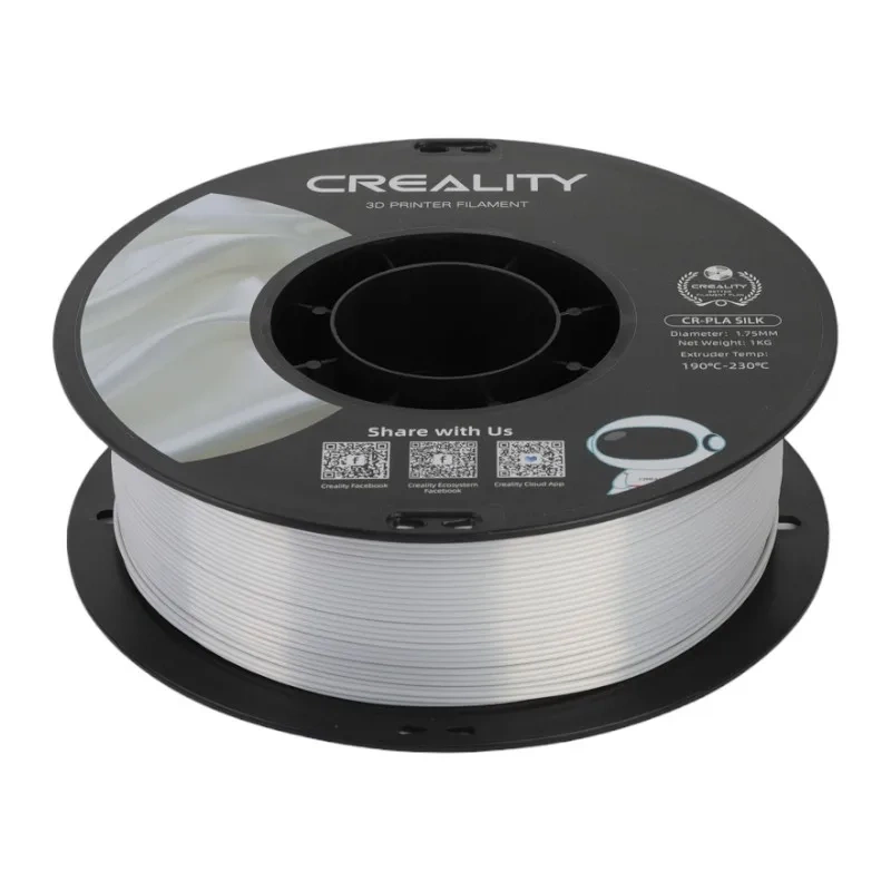 Creality CR-Silk PLA Filament (Silver) Creality’s CR-Silk filament features a metallic, elegant sheen, making it eye-catching and perfect for printing figurines, decorations and even jewelry.