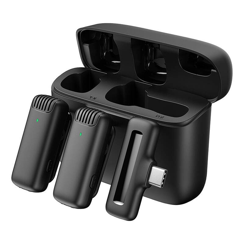 Apexel APL-MIC008 type-C lavalier microphones with charging case, 2 pcs. The Apexel APL-MIC008 lavalier microphones with charging case are a modern solution for those looking for a wireless audio recording system.