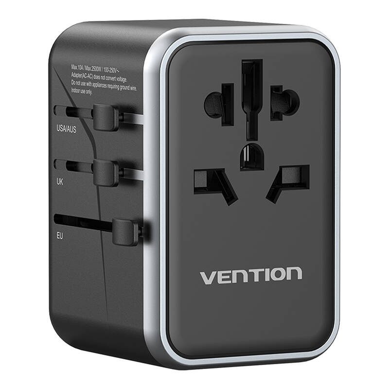 Vention FJFB0 GaN 2xUSB-C 2xUSB-A Universal Travel Adapter 65W (black). The Vention FJFB0 travel adapter is the perfect combination of lightweight, performance and security.